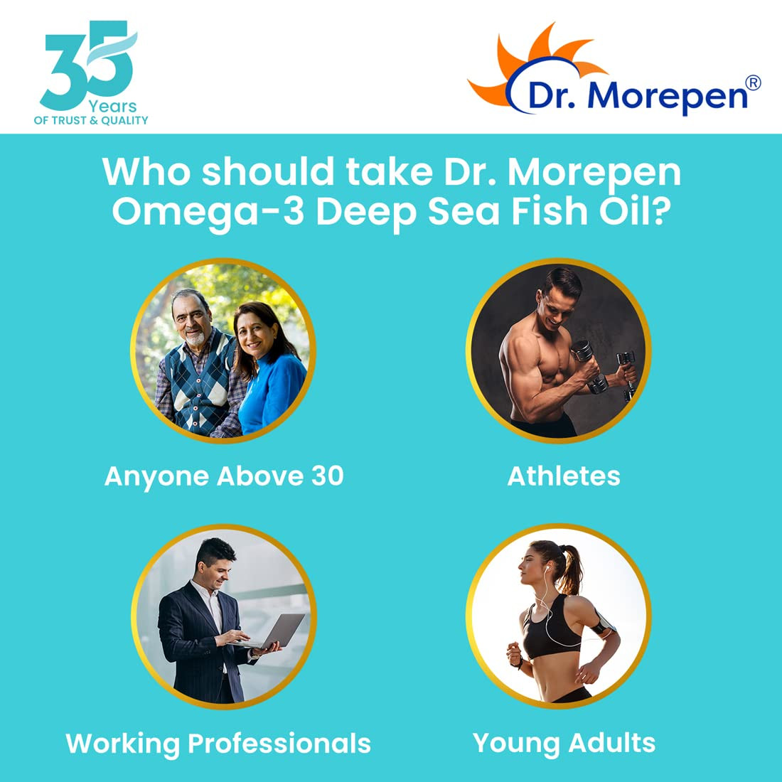 Our Omega-3 fish oil soft gels comes enriched with essential fatty acids such as Eicosapentaenoic acid (EPA) & Docosahexaenoic acid (DHA) our bodies need to stay in good health & function well. Though our bodies produce these polyunsaturated fats in small amounts; we need to get plenty of them either through diet or supplements for overall wellness. Our Deep Sea Omega-3 capsules come brimming with ultra-pure & microfiltered Omega-3 fish oil derived from Deep Sea Peruvian Anchovies. Each of these soft gel capsules contains 180 mg of EPA & 120 mg of DHA alongside vitamins A, D, and E to replenish your body for improved heart, brain, & bone health. Our Omega-3 fish oil supplement diligently works to promote heart health by reducing the levels of bad cholesterol & triglycerides. Besides, key nutrients in this fish oil supplement improve blood circulation & regulate blood pressure for better heart functions. Around 60% of the human brain is made of fats & most of them are Omega-3 fats. Therefore, getting plenty of Omega-3 fats (EPA & DHA) is crucial for the regulation of brain functions.
