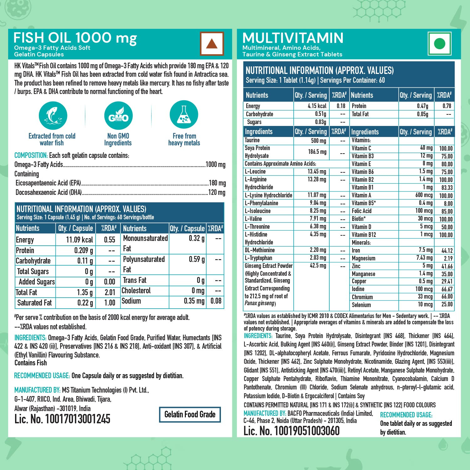 For Women & Men, HealthKart HK Vitals Multivitamin and Fish Oil Combo (60 Multivitamin Tablets & 60 Fish Oil Capsules)