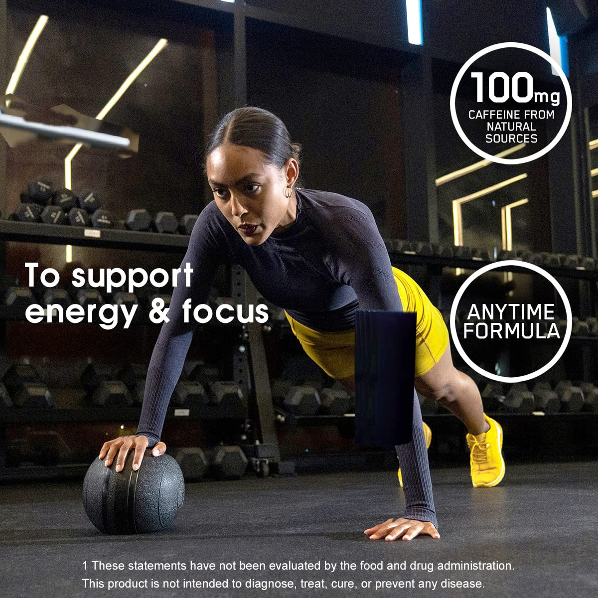 ✅ Caffeine 100 mg per serving from natural sources (Coffee Bean and/or Tea Leaf Extract).