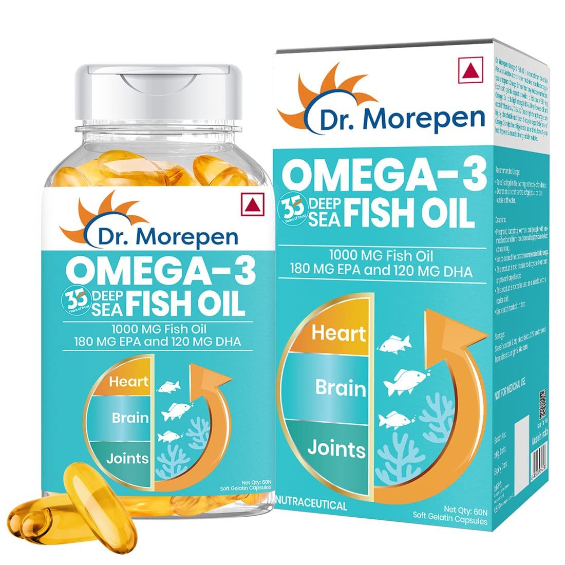 Our Omega-3 fish oil soft gels comes enriched with essential fatty acids such as Eicosapentaenoic acid (EPA) & Docosahexaenoic acid (DHA) our bodies need to stay in good health & function well. Though our bodies produce these polyunsaturated fats in small amounts; we need to get plenty of them either through diet or supplements for overall wellness. Our Deep Sea Omega-3 capsules come brimming with ultra-pure & microfiltered Omega-3 fish oil derived from Deep Sea Peruvian Anchovies. Each of these soft gel capsules contains 180 mg of EPA & 120 mg of DHA alongside vitamins A, D, and E to replenish your body for improved heart, brain, & bone health. Our Omega-3 fish oil supplement diligently works to promote heart health by reducing the levels of bad cholesterol & triglycerides. Besides, key nutrients in this fish oil supplement improve blood circulation & regulate blood pressure for better heart functions. Around 60% of the human brain is made of fats & most of them are Omega-3 fats. Therefore, getting plenty of Omega-3 fats (EPA & DHA) is crucial for the regulation of brain functions.