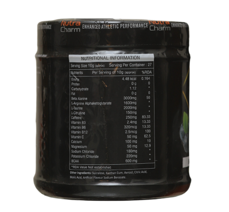 ✅ With 250mg of caffeine, Nutra Charm Pre-Workout provides energy during workouts and training sessions, as well as 3000 mg of Beta-Alanine, L-Arginine Alphaketoglutarate 1600mg, L-Taurine 2000mg, L-Citrulline 150mg and BCAA 600mg to support your goals.